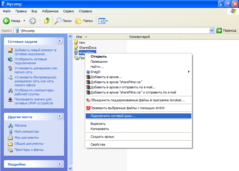 Согласитесь, что каждый раз искать общую папку в Сетевом окружении не очень удобно. Гораздо практичнее подключить ее к вашему компьютеру в качестве сетевого диска. Он будет отображаться в списке дисков окна Мой компьютер, и вы сможете быстро работать с его содержимым.