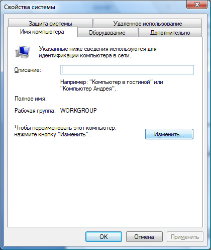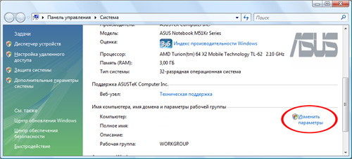 Присваиваем имя компьютеру под управлением Windows Vista: