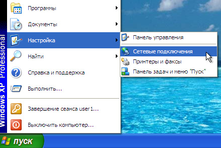 1.На ПК1 нажмите «Пуск» - «Настройка» и дважды щелкните мышью по пункту «Сетевые подключения».