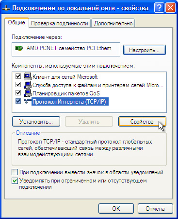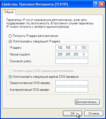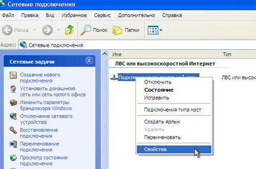 Присваиваем адрес компьютеру под управлением Windows XP: