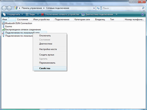 3.Правой кнопкой мыши щелкните «Подключение по локальной сети» и выберите «Свойства».
