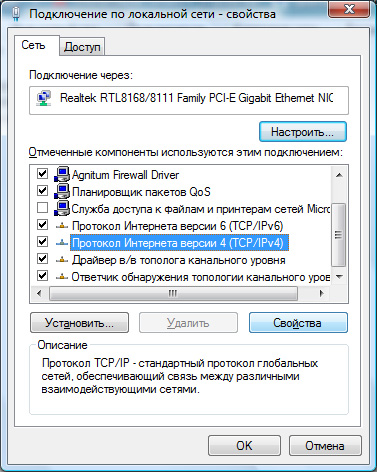 Присваиваем адрес компьютеру под управлением Windows Vista: