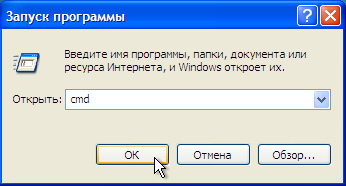 2.Откроется командный интерпретатор Windows. Здесь можно набирать
