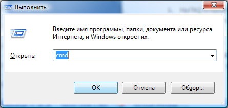1.На ПК2 откройте меню «Пуск» и выберите «Выполнить». В поле введите cmd (на английском) и нажмите «ОК».