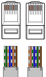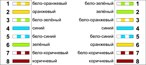 (слева – один конец кабеля, справа – другой конец). Эта схема называется