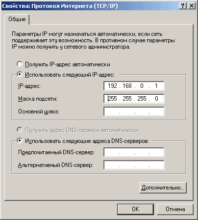 Рис.4 Создание новой сети прямого соединения