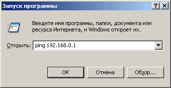 На этом настройки на первом компьютере можно считать законченными. Единственно для  проверки что все было сделано без ошибок рекомендую выполнить команду ping с заданным выше IP адресом. Для это следует нажать Пуск-Выполнить и появившемся окне ввести нужную строку (рис.10)
