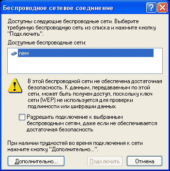 Рис.13 Чтобы подключиться к доступной сети "new" нажмите кнопку "Настроить".