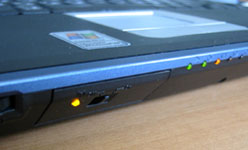 Итак, имеются два ноутбука, оборудованных встроенным или отдельным адаптером с беспроводным интерфейсом Wi-Fi. Чтобы связать их в беспроводную сеть, для начала необходимо включить устройства Wi-Fi на обоих компьютерах (по умолчанию они выключены). На корпусе ноутбука иногда есть кнопка или переключатель, при включении которых загорается лампочка возле значка, похожего на  ((i)) .  На ноутбуках, в которых Wi-Fi адаптер куплен дополнительно, такой кнопки нет.