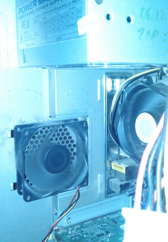 А нагретый воздух эвакуируют из корпуса штатный корпусной вентилятор, и вентилятор, установленный в блоке питания.