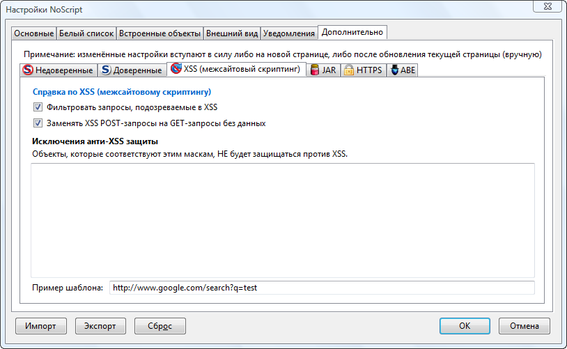 Для отключения же скриптов имеется замечательное дополнение для Mozilla Firefox – NoScript, которое умеет не только блокировать рекламу и выполнение JavaScript на посещаемом сайте, но и позволяет составить «белый» список сайтов, которым вы доверяете. NoScript также умеет блокировать выполнение межсайтовых скриптов, предотвращая атаки XSS.