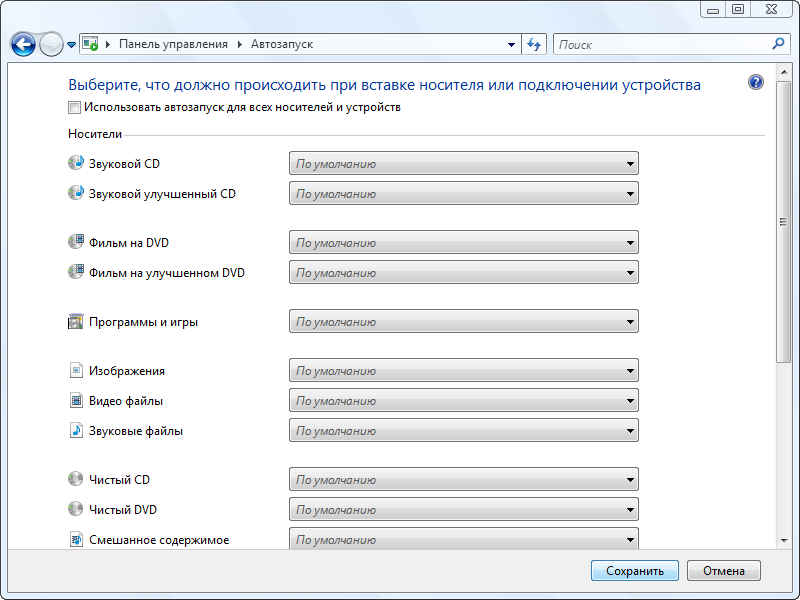 Совет 4. Отключите автозапуск при подключении к компьютеру дисков и флешек