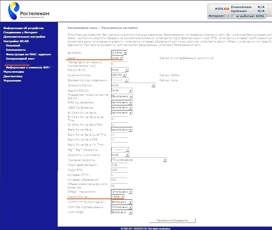 Transmit power. Подберите этот параметр таким образом, чтобы по квартире