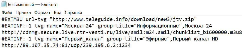 3. С новой строки - идентификатор канала: #EXTINF:-1