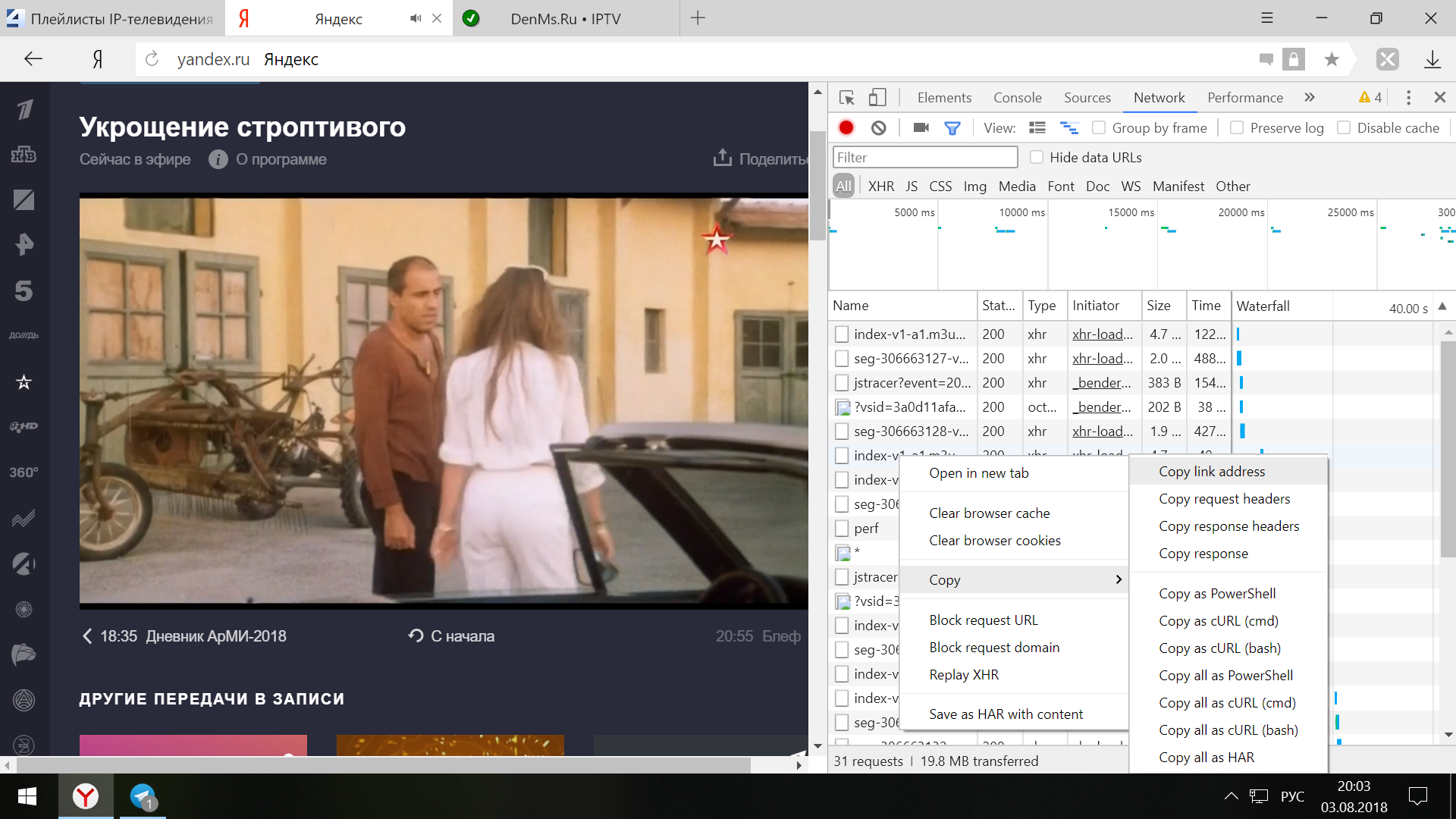 7) Правой кнопкой мыши по ссылке с .m3u8 -> "Copy" -> "Copy link address":