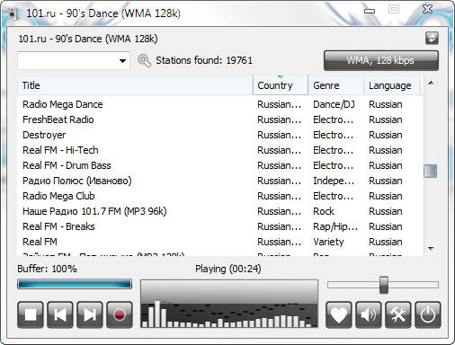 * Поддерживает основные форматы интернет радио – mp3, wma, ogg vorbis, aac+ и другие