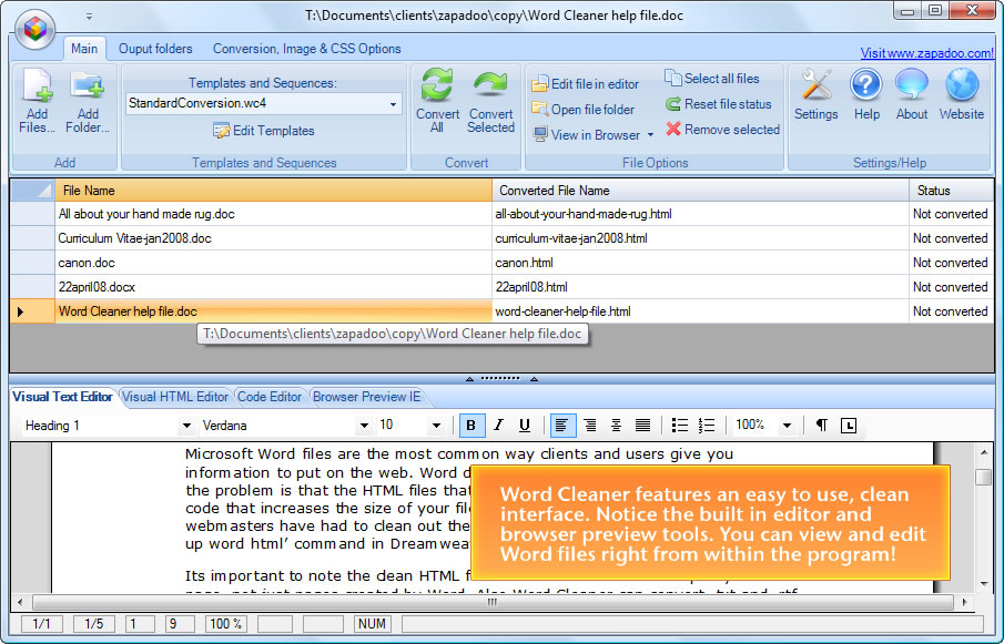 поддерживать вебсайты. Word Cleaner сохранит ваше время, проеденное для