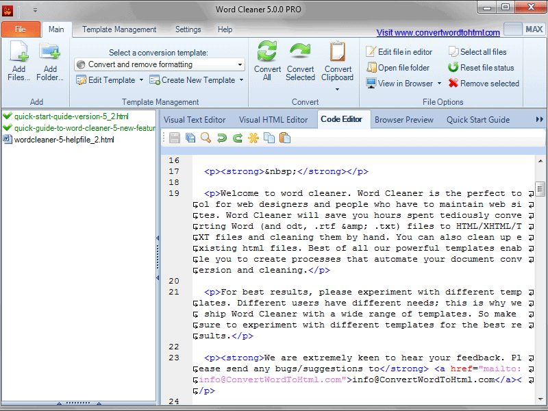 - Word Cleaner также конвертирует.rtf и.txt файлы в HTML, а также множество